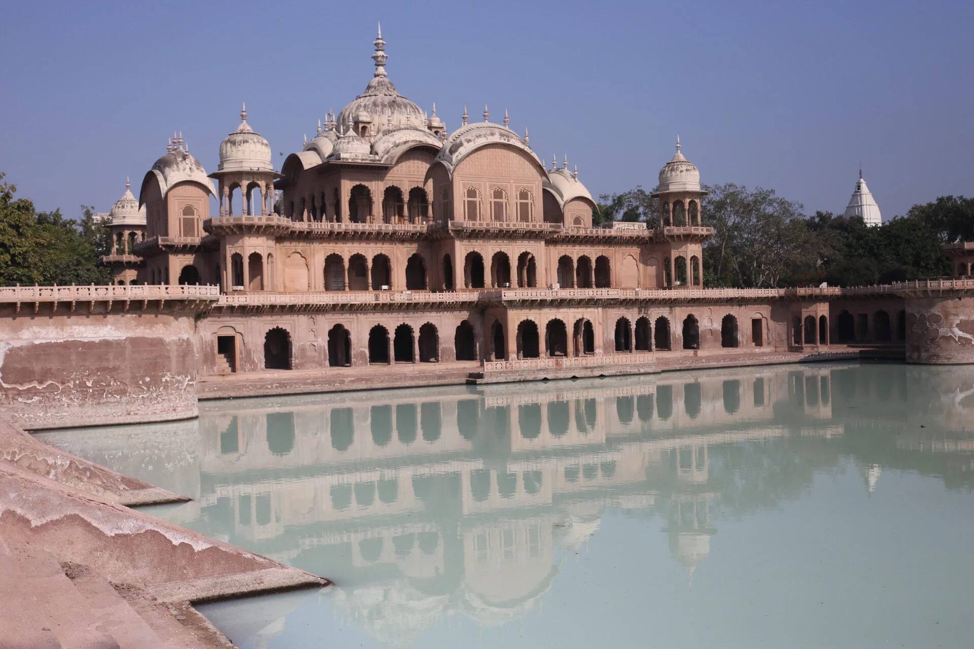 Люди говорят – это чудо Говардхана. Кто-то говорит – чудо Радхи и Кришны. Нет логического объяснения, почему вода приобретает совершенно белый цвет. Если вы попробуете ее на вкус – он похож на молоко. Мы не говорим об этом местным – а то придут толпы посмотреть на чудо и начнется настоящий хаос. Это самый длинный промежуток времени, который мы видели – раньше никогда это не длилось так долго. Вот уже 25 лет мы наблюдаем изменения цвета воды в нашем кунде. И мы пытались его чистить, но когда опустились на 40 ступеней вниз – пришлось остановиться.